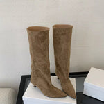 Pointed Toe Kitten Heel Mid Calf Boots