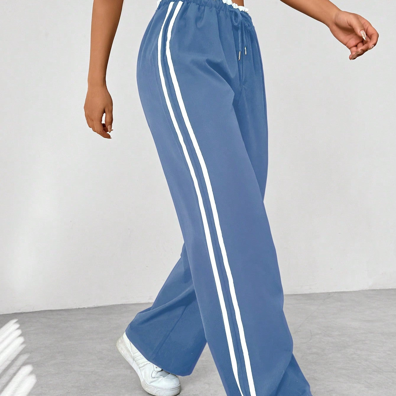 High Waist Wide Leg Track Pants with Side Stripe Detail