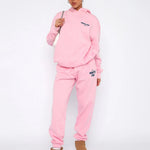 This relaxed hoodie and jogger set is designed to offer everyday comfort with a modern, street-inspired edge. Featuring a soft hoodie paired with matching jogger pants, this coordinated set delivers a laid-back yet polished look that is easy to wear and style. The hoodie features a relaxed silhouette with a classic hood and subtle graphic text detail, adding a contemporary touch while maintaining a clean, minimalist aesthetic.