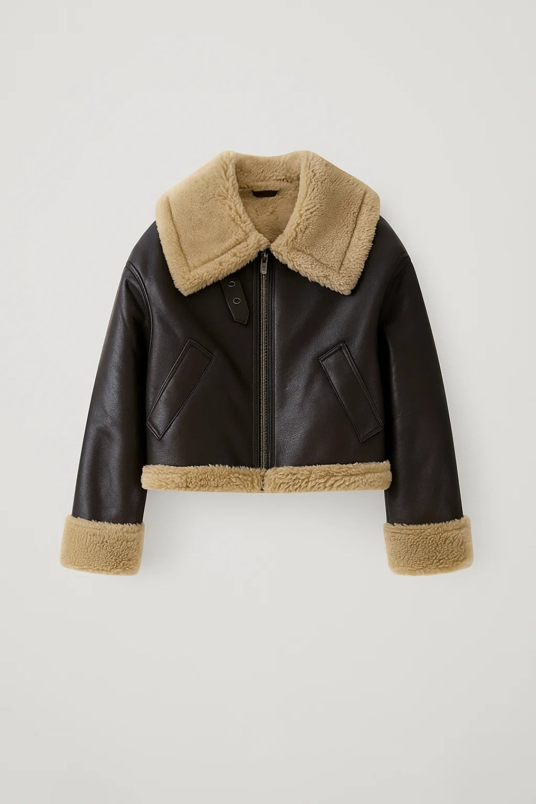 Crafted for both style and practicality, this jacket offers a balanced fit that layers easily over tops and knitwear without feeling bulky. The structured construction helps maintain its shape, while the plush trim enhances insulation for cooler days. Subtle seam detailing and functional pockets complete the design, making it as versatile as it is stylish.