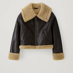 This faux leather shearling trim zip front jacket is designed to deliver timeless style with cozy, modern appeal. Featuring a structured silhouette, this jacket blends the sleek look of faux leather with soft shearling trim for added warmth and contrast. The classic zip front closure creates a clean, polished finish, while the shearling-lined collar, cuffs, and hem provide comfort and a refined, seasonal touch.